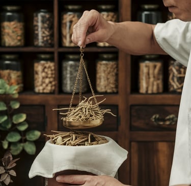 que potencian el efecto de las principales, hierbas terciarias (zuo) para equilibrar la fórmula, y hierbas auxiliares (shi) que alivian los efectos secundarios o guían el tratamiento hacia una zona específica del cuerpo. Las fórmulas pueden presentarse en forma de decocciones, polvos, píldoras o extractos líquidos, ajustándose a las necesidades del paciente y a la conveniencia en su administración.